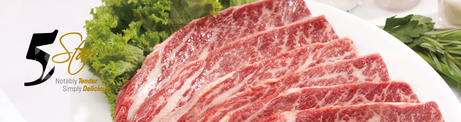 與一般牛肉相比,五星牛隻較早進入育肥期,歷經近 300 天的穀物飼養,具備肉色粉亮、肉質柔嫩、保水性佳等特色。冷藏進口並經濕式熟成後,進一步提昇風味與口感,為講究規格與效率的餐飲市場,提供值得信賴的選擇。